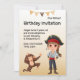 Ahoy Matey! Uma criança está jogando uma festa de aniversário e uma caça ao tesouro? E todos os piratas estarão lá? Arrr! Posso me juntar? Estou convidado? Aqui temos um convite de aniversário para jovens piratas e ainda mais para jovens piratas. Macaco pirata e pirata, bem como texto de convite e data na frente, localização e mais piratas nas costas.