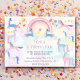 Convites Aniversário de criança unicórnio a cores do arco-í