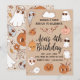 Cartão retrorreflector do convite de aniversário do Teto das Bruxas Bonitas com ilustrações de um fantasma, gato preto, morcego e abóboras.