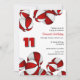 Este convite de festas temático de basquete giro para um aniversário ou uma festa do time apresenta clusters de basquete vermelho e branco nas bordas superior e inferior do cluster de solteiros que cobre a parte de trás do convite - personalize os detalhes da festa em um fundo branco - por katz_d_zynes