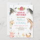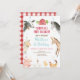 Este convite adorável apresenta animais de fazenda com chapéus de festa e confete.