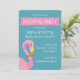 convite de aniversário de flamingo de bolinhas rosa, bonito, com faixa rosa na turquesa. Padrão branco de quatrefoil ao contrário. Personalize o texto para o seu próprio tipo de participante! Entre em contato com o comerciante se precisar de assistência.
