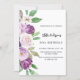 Um fundo violeta, lavanda, colorido d'água e uma armação de arco. Decorado com flores violetas e púrpuras de cor aquosa e verde. Personalize e adicione seu nome e detalhes da festa.