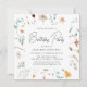 Convites de festas de aniversários simples e florais com detalhes da sua festa enfeitiçados dentro a quadrado quadro floral de flores silvestres e folhagem em tons de branco, amarelo, vermelho, creme, azul e verde. Os convites para o aniversário da flor selvagem do boho são perfeitos para serem usados tanto para adultos como para crianças.
