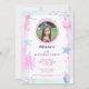 Este convite de aniversário temático "debaixo do mar" fofo e caprichoso apresenta um polvo, uma medusa, uma estrela-do-mar e um cavalo-marinho. É personalizável com uma foto da aniversariante especial! O verso do convite apresenta uma sereia, cardumes de peixes e um polvo fofo.