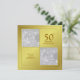 O convite Aniversário de Foto do Passado & Presente Dourado (Brilhante) é perfeito para aqueles que celebram seu 50º aniversário de casamento, um marco frequentemente referido como aniversário de casamento dourado. Personalize a frente deste cartão com uma foto do dia do casamento e outra foto atual do casal. © Manhã 6