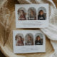 Um design moderno e boho, perfeito para 3 amigos ou irmãos que estão tendo uma festa conjunta! Você pode adicionar suas próprias fotos (certifique-se de que elas estejam cortadas no Zazzle e, em seguida, que as fotos estejam movidas para a parte inferior das Camadas, para que fiquem atrás das formas arqueadas) e editar a idade em cada arco. Você também pode editar todos os detalhes do texto ao longo da parte inferior.