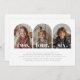 Um design moderno e boho, perfeito para 3 amigos ou irmãos que estão tendo uma festa conjunta! Você pode adicionar suas próprias fotos (certifique-se de que elas estejam cortadas no Zazzle e, em seguida, que as fotos sejam movidas para a parte inferior das Camadas, para que fiquem atrás das formas arqueadas) e editar a idade em cada arco. Você também pode editar todos os detalhes do texto ao longo da parte inferior.