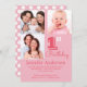 Um simples cartão de convite de aniversário de 3 fotos. Substitua facilmente as três fotos de modelo com suas próprias fotos de seu adorável filho ou da família por um garoto para fazer uma foto única e memorável, convidando e mantendo-se.