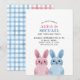 Convites Aniversário de gêmeos com coelhos azuis e rosas
