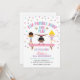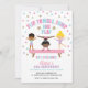 Sacudir, Tumble, Salta e Joga! Convite de aniversário de ginástica em cores rosa, roxo e azul pastel.