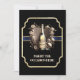Um design elegante, na moda e elegante de uma garrafa vintage de vinho espumante contra um arco azul revestido de dourado falso enquadrado por uma armação de ouro. As costas têm a mesma garrafa elegante de espumante e modelos para a sua redação personalizada. Estes são ideais para qualquer celebração especial seja se trata de um evento comercial, de graduação, aposentadoria, reunião, anúncio de nascimento, festa de Ano Novo ou outro evento marcante.