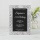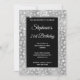 Crie o seu próprio convite para comemoração de aniversário de na moda de rico marco 5x7 para ela. Folha de cor prateada, falso, com um brilho muito brilhante e uma abstrato de pele de animal da mancha-leopardo impressão. Um retângulo preto com cinza de prata escovou a tampa metálica do papel de ombre borda do seu convite. Personalize os estilos de fonte branca, cor e tamanho. A luxuosa folha moderna e a aparência reluzente são criadas com elementos de arte digitais que impressão gostam de uma foto. Fabuloso convite de aniversário de safari moderno para sua filha.