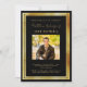 Um convite de aniversário elegante, moderno e simples. Um fundo preto decorado com falsos quadros de ouro. Personalize e adicione um nome de foto e detalhes. Texto do ouro.