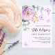 Um fundo de cor lilás macio. Decorados com um rosa lilás, roxo e eucalipto verde e borboletas, de cor aquosa. Personalize e adicione seu nome e detalhes da festa.