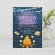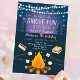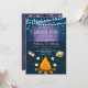 Este adorável convite apresenta as nossas ilustrações desenhadas à mão e à fogueira com estrelas, árvores e luzes brilhantes de cordas.