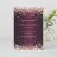 Para um aniversário elegante de 21 ruas (ou qualquer idade). Uma cor de fundo arrojada. Decorado com rosa dourado confetti. Personalize e adicione um nome, idade e detalhes da festa.