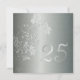 Elegante convite de aniversário de casamento de 25 anos brilhante em damasco prateado com um toque floral. Com um tom suave esverdeado aqua, este convite formal elegante certamente impressionará seus convidados na festa de Aniversário de Bodas de Prata da Paper Expressions.