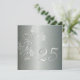 Elegante convite de aniversário de casamento de 25 anos brilhante em damasco prateado com um toque floral. Com um tom suave esverdeado aqua por baixo, este convite formal elegante certamente impressionará seus convidados na festa de aniversário de casamento de prata da Paper Expressions.