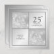 O convite do Anniversário de Prata de Fotos do Passado e Presente (Shiny) é perfeito para aqueles que celebram seu aniversário de casamento de 25, um marco frequentemente chamado de aniversário de casamento de prata. Personalize a frente deste cartão com uma foto do dia do casamento e outra foto do dia do presente do casal. © Manhã 6