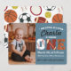 Convite de primeiro aniversário com tema esportivo fofo com uma foto do aniversariante.
