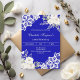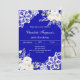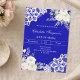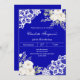 Para uma festa de inverno elegante. Um fundo azul real decorado com flores brancas, rosas e rendas brancas. Personalize e adicione seu nome e detalhes.