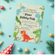 Faça do aniversário do seu filho uma aventura memorável com nossos Convites de festas Dino deliciosos! Esta charmosa design mostra uma vibrante borda de dinossauros brincalhões e folhas à volta dos detalhes do seu partido personalizado na na moda, tipografia moderna contra um simples fundo festivo e macio. O verso do convite oferece a opção de mostrar a foto do seu filho, acrescentando um toque pessoal à comemoração. Como alternativa, você pode escolher uma cor de fundo de sua escolha. Personalize este convite cheio de diversão adicionando o nome do seu filho e todos os detalhes importantes da festa. Prepare-se para uma comemoração de dino-ácaro!