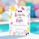 Este convite de aniversário para meninas apresenta ilustrações coloridas adoráveis de verão com sotaques falsos de folha de ouro.