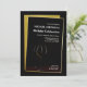 Um convite de aniversário preto clássico e dourado, com uma fina e magra cintilação, com óculos de vinho, antecipando-se a uma ocasião sofisticada para celebrar o aniversário. Adequado para qualquer idade. Mude os detalhes deste convite para o seu próprio, em preparação para a celebração festiva com os seus hóspedes.