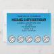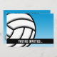 modelo de convite de aniversário de voleibol preto, branco e azul legal.