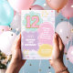 convite de 12 de aniversário do pastel varsity preppy patch.