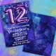 Garoto 12 azul roxo convite aos meninos 12 convites de aniversário para um garoto roxo azul com escrevendo moderno de roteiro e balões de folha divertida.