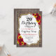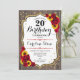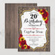 Convite de Aniversário para 20 Russo. Design elegante com ouro brilhante falso e padrão de madeira castanha escura. Possui girassóis e rosas. Perfeito para uma elegante festa de aniversário de campo ou jardim.