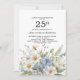 Bonito convite de 25 de aniversário de casamento estilo country com bonito flores azuis e margaridas brancas.