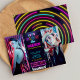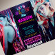 Celebre sua festa de aniversário com nosso convite para ingresso Neon Glow. Passagem de tíquete Apresenta texto baixo do vamos futurista em fundo escuro com 2 fotos substituíveis. Este design moderno e sofisticado é perfeito para festa de boate, festa de embrulho, discoteca de roller ou festa de brilho.