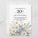 Bonito convite de 30 de aniversário de casamento estilo country com bonito flores azuis e margaridas brancas.
