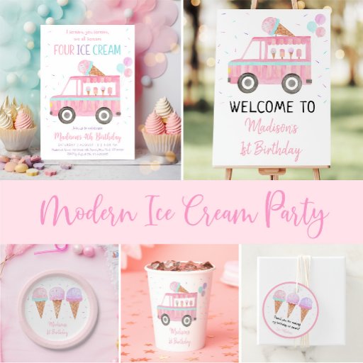 Este convite bonito apresenta meu cone de sorvete de aquarela pintado manualmente com verniz dourado falso.