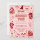 Convites Aniversário do 6 de Halloween Retro, Rosa e Vermel