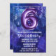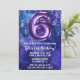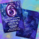 Garoto 6 azul roxo convite para meninos 6 convites de aniversário para um menino roxo azul com escrevendo moderno de roteiro e balões de folha divertida.
