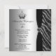 Convites de celebração de festas de aniversário para 70, personalizáveis em preto e prata, de 70 ou 70 anos. Elegante e na moda personalizado, zebra estampada, estrias brilhantes, parecem convites com uma linda coroa princesa impressa com diamantes e joias pretas e uma linda joia de coração cinza impressa e bonito fita impressa em um fundo de gradiente de glamour prateado de platina. Estes convites à moda sofisticados e na moda são decorados de ambos os lados. Trendy, chic, clássico, convites de moda moderna. Esses convites são adequados para qualquer idade, pois todo o texto é totalmente personalizável. NOTE: Todos os produtos do Zazzle têm imagens impressas planas - NÃO joias reais, fita ou brilho. Texto, fonte e cor da fonte são todos personalizáveis. Se precisar de ajuda para personalizar seu produto, entre em contato comigo pela loja e terei todo o prazer em ajudar.