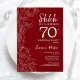 Convite de Aniversário para 70 de Surpresa Vermelha Branca. A design feminina moderna minimalista apresenta sotaques botânicos e letra de script de tipografia. Simples cartão de convite floral perfeito para uma festa surpresa na moda. Impressos convites Zazzle ou modelo de impressão digital instantânea para download.
