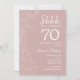 Um convite de aniversário de 70 de surpresa rosa e branco. A design feminina moderna apresenta sotaques botânicos e fontes de script de tipografia. O cartão de convite floral elegante é perfeito para uma festa surpresa na moda. Impressos convites Zazzle ou modelo de impressão digital instantânea para download.