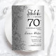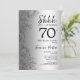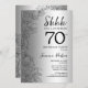 Convite de aniversário de 70 de Silver Surprise. Design Glam feminina com sotaques botânicos e letra de script de tipografia. Simples cartão de convite floral perfeito para uma festa surpresa na moda. Pode ser personalizado para qualquer idade. Impressos convites Zazzle ou modelo de impressão digital instantânea para download.
