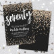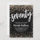 Apresentando um convite de aniversário chic e comemorativo, perfeito para marcar este marco especial no estilo. O elegante design apresenta uma mistura de ouro e cinzas prateadas, acrescentando um toque de diversão e festividade. No topo, "Setenta" é exibido com destaque na caligrafia em negrito, definindo o tom para uma celebração inesquecível. O texto combina scripts e fontes modernas simples em branco, criando um contraste impressionante em relação ao fundo preto. Isso dá ao convite um aspecto na moda e sofisticado. O brilho continua atrás, adicionando um toque extra de brilho ao design geral. Este convite é perfeito para comemorar 70 anos com talento. As cores da fonte e do plano de fundo podem ser personalizadas para corresponder ao seu estilo. Celebração Elegante De 77 Anos De Diário De 70 Negro E Dourado. Por favor, note que a brilha está falsa, sem folha de alumínio ou cinza. Disponível como um convite impresso ou como um convite digital para download que você pode enviar por e-mail ou que foi impresso localmente!