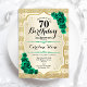 Convite de aniversário 70. Elegante design verde esmeralda floral com rosas. Funcionalidades com listas de ouro de brilho inverso e letra de script. Perfeito para uma comemoração de dia das mulheres na moda. Pode ser personalizado para qualquer idade! Impressos convites Zazzle ou modelo de impressão digital instantânea para download.