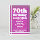 Enviar convites para uma celebração de 70 com este Convite de Aniversário do 70 Roxo. Ele pode ser personalizado com suas informações pessoais.