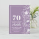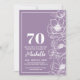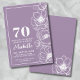 Apresentando um convite de aniversário chic e elegante, perfeito para celebrar os 70 anos de estilo. A design apresenta um lindo fundo lilás ou roxo lavanda em ambos os lados, com uma delicada arte de linhagem de anêmonas correndo pelo lado direito. Enquanto estas são flores anêmonas, elas podem puxar um olhar floral bastante genérico. Um quadro simples ao redor da borda adiciona um detalhe extra ao design geral. As fontes são uma mistura de tipografia elegante, serifa ousada e estilos modernos simples, com um grande "70" exibido no topo, seguido dos detalhes da festa abaixo. No verso, a design continua com o mesmo fundo lilático ou lavanda e um contorno de flor branca solteiro, acrescentando um toque sutil e sofisticado. Este convite é perfeito para uma comemoração de 70 anos. A cor de fundo, as fontes e até as flores podem ser personalizadas para corresponder ao seu estilo. 70 de Aniversário Floral Convoca Flores Elegantes Lavanda Lilac E Festa Branca 70. Disponível como um convite impresso ou como um convite digital para download que você pode enviar por e-mail ou que foi impresso localmente!