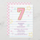 pastel varsity preppy patch, convite para 7 de aniversário do notebook com doodles de notebook e checker de volta.