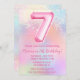 7 do Arco-Íris rosa, "Aniversário", convite de aniversário Brily Pink Glitter para uma menina de 7 anos com escrevendo moderno de escrita e balões de folha divertida.