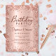 Convites de festas de aniversários rosa de ouro moderno, elegantes, metálicos e 80 brilhante. Este design de placa girly adulta apresenta um roteiro de caligrafia manuscrito na moda, cor-de-rosa-pincel ou rosa dourado, fundo metálico escovado com fusível brilho. Fácil de personalizar, perfeito para qualquer idade.